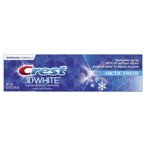 3d crest white toothpaste. Crest 3d white radiant mint whitening toothpaste crest our response to covid 19 learn more. Brighten your smile with crest 3d white arctic fresh whitening toothpaste. 3d white fluoride toothpaste also strengthens your tooth enamel and helps protect against cavities. It whitens your teeth by removing up to 80 of surface stains and protects against future stains for a noticeably whiter smile.