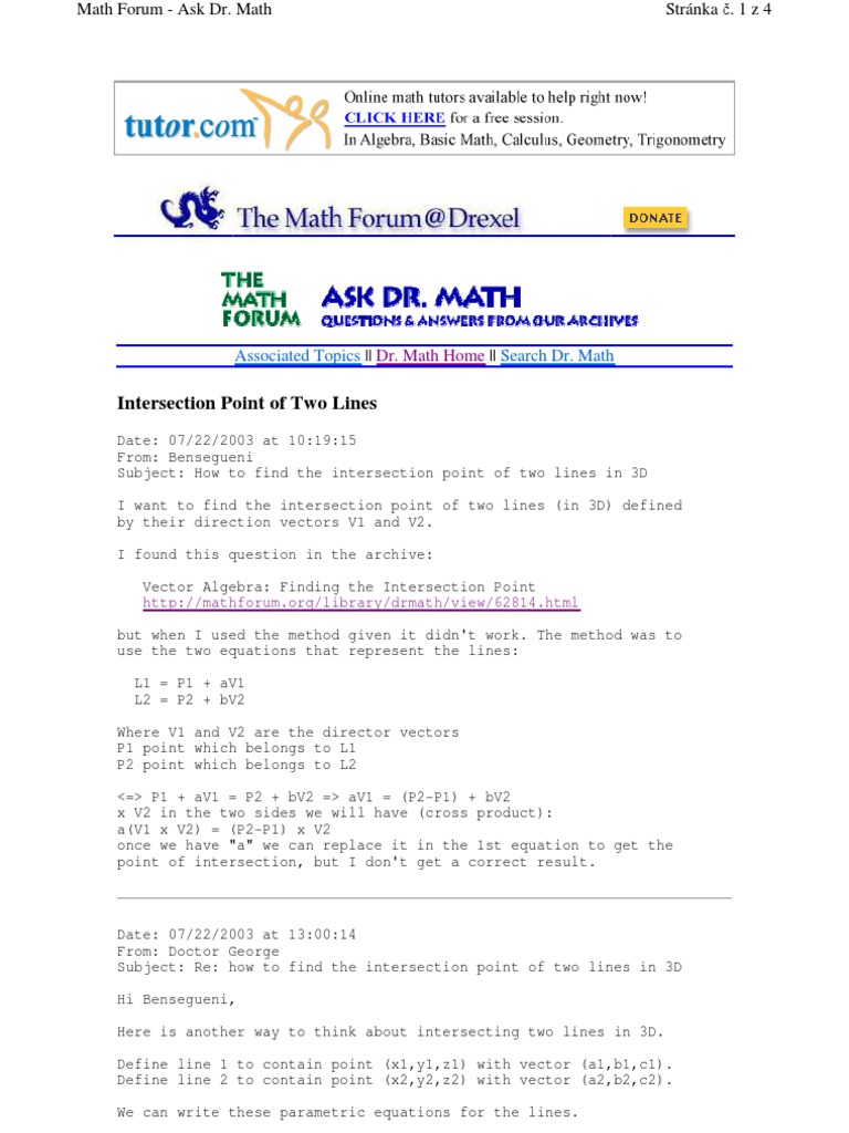 Intersection Of Two Lines In 3d
