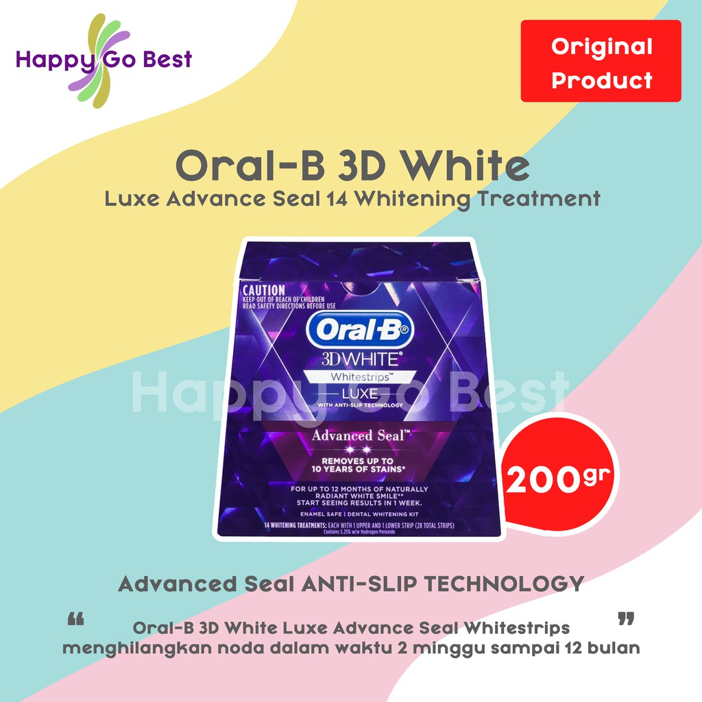 Oral b 3d teeth whitening strips oral b 3d white luxe advanced seal strips. 3d white whitestrips provide you with a beautiful whiter smile. Oral b 3d white luxe advance whitestrips seal 28 strips pemutih gigrp470000. Reveal your whiter smile recommended to be used with the 3d white collection.