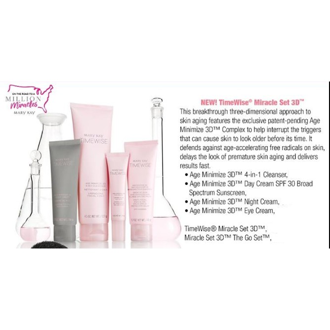 Timewise miracle set 3d. This full spectrum three dimensional approach helps minimize the appearance of skin aging. Defends against age accelerating free radicals on skin with multiple antioxidants. Timewise age minimize 3d 4 in 1 cleanser. The timewise miracle set 3d defends delays and delivers for younger looking skin.